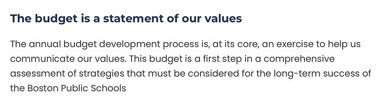 “Foundation budget” sounds much more like an accountant’s dream than a cause célèbre for educational justice, but it is hard to think of a policy that has done more to advance (and constrain) equity at scale. After all, budgets are more than statements of how to spend money; they are statements of values (as the BPS Budget Office notes on its budget page every year). And when the state’s formula for calculating education aid consistently, year after year, fails to cover the actual costs of educating children, the value statement is something like, “We don’t actually value an adequate education.”